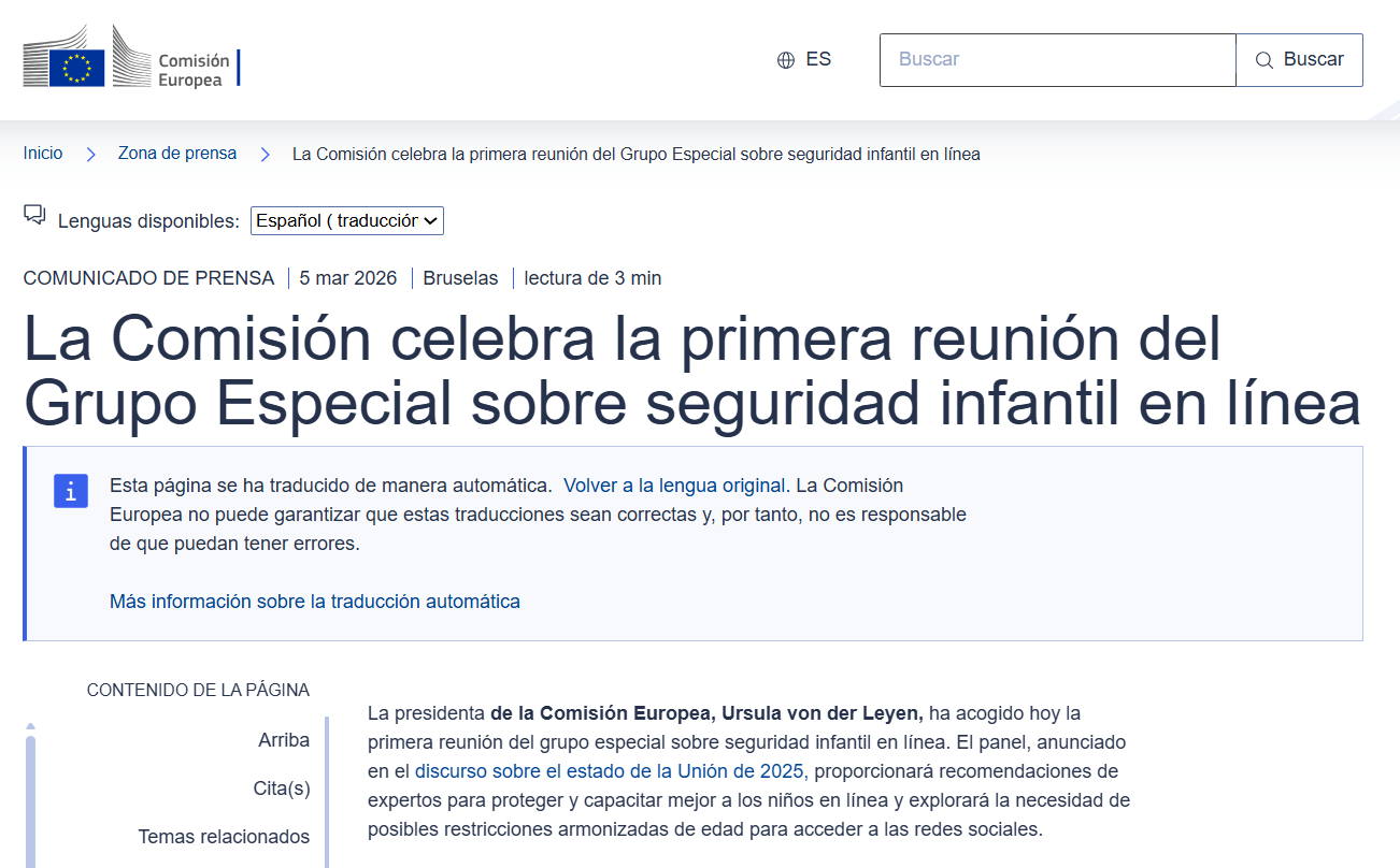 La presidenta de la Comisión Europea, Ursula von der Leyen, ha acogido hoy la primera reunión del panel especial sobre seguridad infantil en línea. El panel, anunciado en el discurso sobre el estado de la Unión de 2025, formulará recomendaciones de expertos para proteger y empoderar mejor a los niños en línea y estudiará la necesidad de posibles restricciones de edad armonizadas para acceder a las redes sociales.